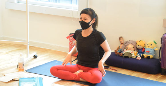 オンラインでも講義内容はしっかり伝わりますが、目の前でまり子先生の多種多様な見本を見ることができ、スタジオを使って実技の練習ができることは、実際、キッズヨガクラスを始めたときにとても役立ちます。